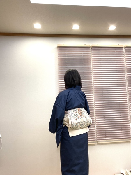 長いので名古屋帯の長さに切って手軽に結べるようにしちゃいました。