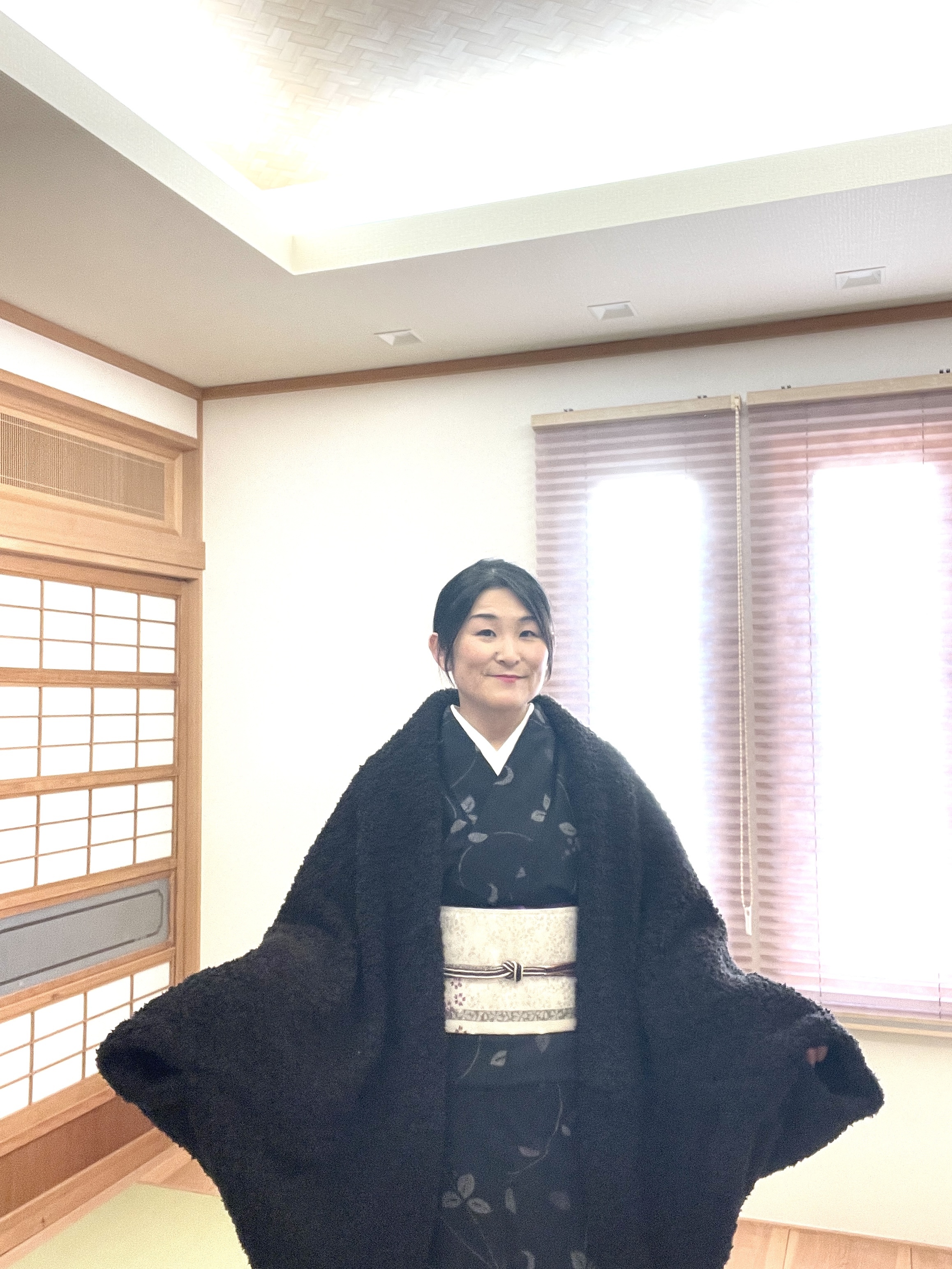 黒色のもこもこを表に