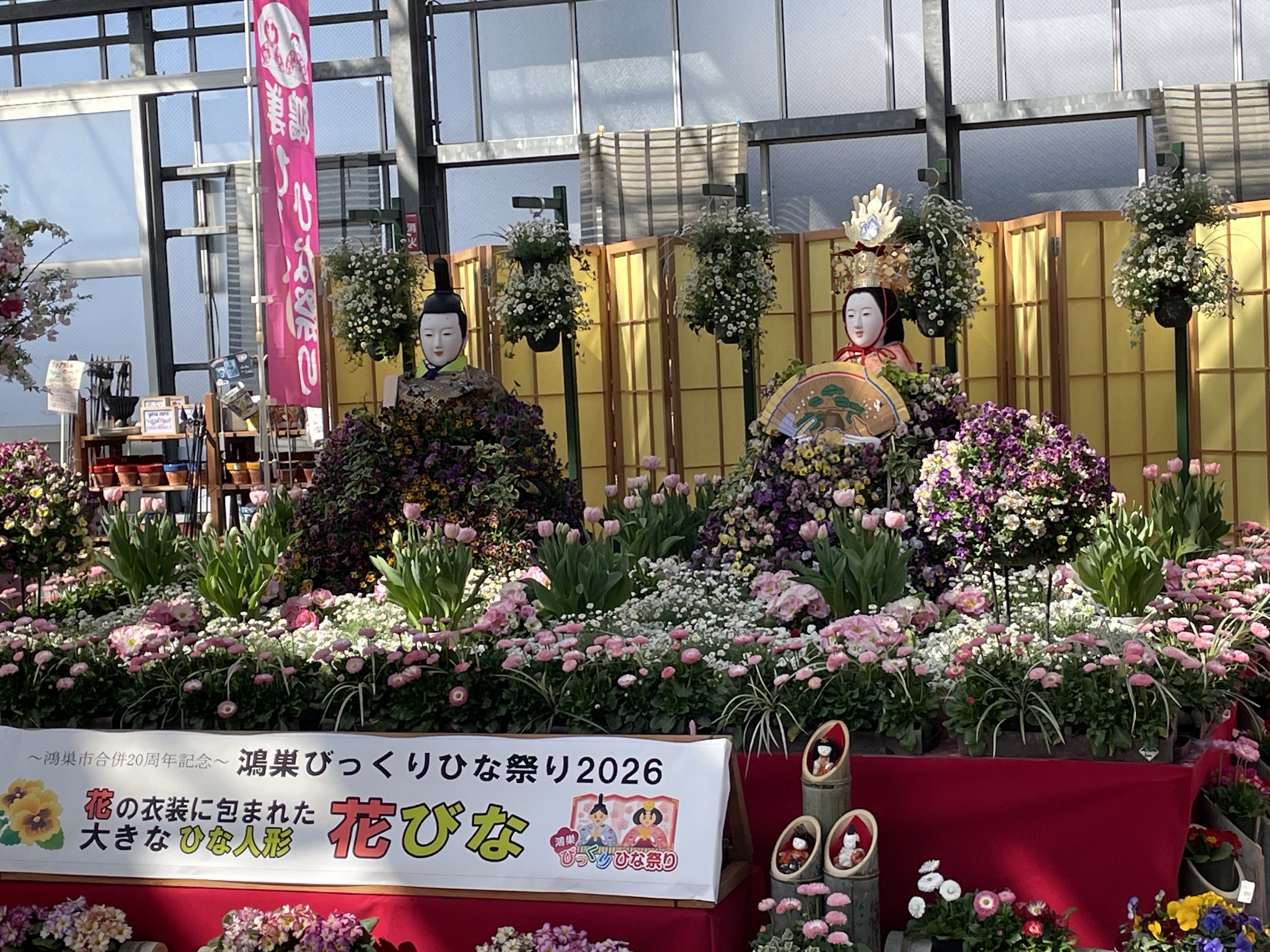 ほぼ天井まで高さのある、ひな人形のタワー😶